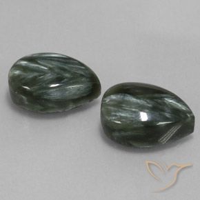 Il s'agit de 2 pierres précieuses Séraphinite Vert foncé naturelles de 11.87 carat de forme En forme de poire avec une taille exacte de 13.99 x 9.94 x 5.06 mm. Ces pierres précieuses Séraphinite en vrac ont été extraites en Russie et leur clarté est Opaque. Ces pierres précieuses de Séraphinite naturel n'ont pas été traitées.